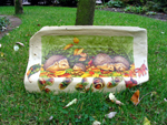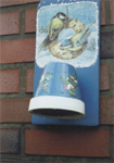 Fliesen mit Tontopf für Meisenknödel.
