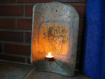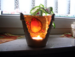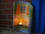 Teelichtständer mit Amsel im Hintergrund...